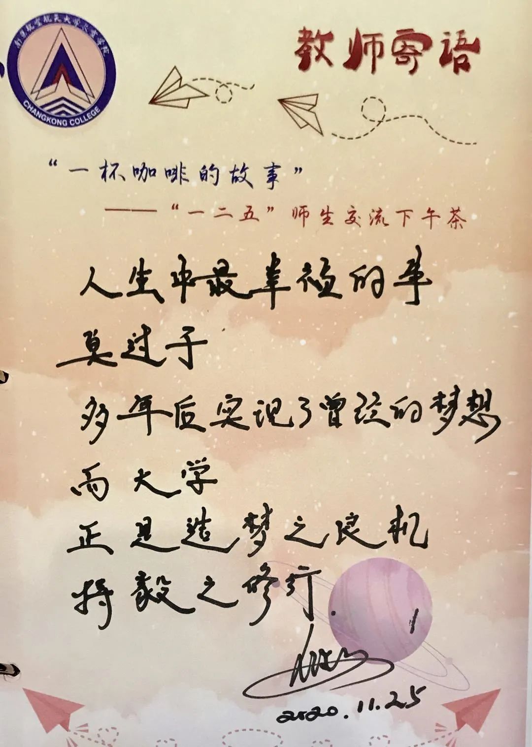 偶然间来到这儿,心中却有种暗示,今天对于自己来说可能是历史性意义的一天,听了老师的一番话我终于找到一种能让自己感到快乐且充实的生活方式。非常感谢老师!