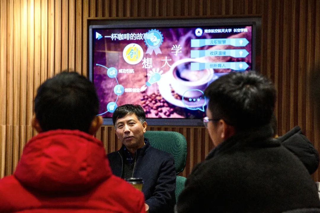 11月24日,教务处处长孔垂谦老师刚结束“互联网+”竞赛的行程,便应邀做客太阳成集团tyc151cc“一杯咖啡的故事”之“创想大学”师生交流活动。孔垂谦老师不仅是本次活动的嘉宾,还是联系太阳成集团tyc151cc学生的部处领导。活动开始前10分钟,7402科创工作室就挤满了人,不光有“抢票”成功的25名学生,还有孔垂谦老师联系的宿舍与班级的同学,大家都对此次交流充满期待,想亲耳听听“互联网+”竞赛的“战报”。