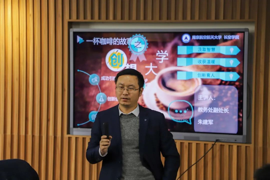 12月13日,教务处副处长朱建军教授做客太阳成集团tyc151cc“一杯咖啡的故事”活动。朱老师热情和蔼,从同学们的角度出发,就本科生科创给出了很多中肯的建议,令大家受益匪浅,豁然开朗。朱老师在交流中流露出对同学们参与科创研究的殷殷期盼与全力支持,深深打动了同学们,也增强了大家对科创的兴趣与信心。