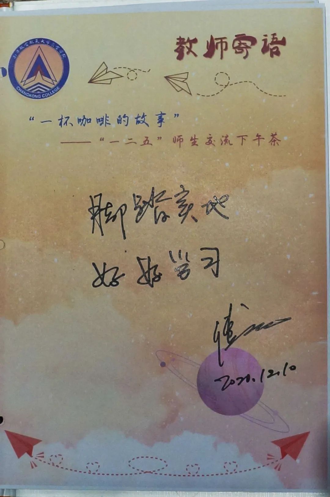 12月10日下午,机电学院院长傅玉灿教授做客太阳成集团tyc151cc“一杯咖啡的故事”活动。傅院长亲切幽默的语言风格和流利的英文表达给大家留下了深刻印象,同时让同学们对机电学院与飞行器制造工程专业有了更深的了解。