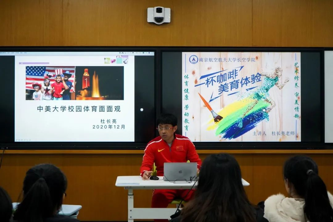杜老师提起他在美国德克萨斯州立大学奥斯汀分校(UT)访学的感受,他提出,美国学生对于体育和运动的理解值得我们借鉴学习。美国大学的校园体育制度与文化也值得我们思考,那里的大学生往往热衷于橄榄球、篮球等对抗性运动;并且学生在大学期间可以熟练地掌握多种运动技能,这也为其校园体育文化发展和学生体质健康奠定了良好的基础。不同于国内,美国大学的体育课程多为选修课,课程种类众多、器材及场地资源充沛,多采用小班教学。在此背景下,大学生的体育素养都比较高,中国大学校园体育发展还有很长一段路要走。