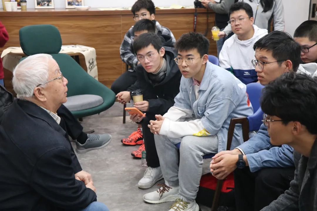 首先,在交流“从何时开始创作”这一问题时,张永荣老先生风趣地介绍了自己的“画疗”经历,他说“年幼时家乡的文化气息潜移默化地影响了自己对书画艺术的热爱,成年之后步入军旅生涯,20年没有绘画;44岁时,由于不幸染上癌症,便选择了闭门作画,6年后病情好转,一直作画到今日。”张老先生接着与同学们分享了与三位老先生们成立基金会捐助新疆贫困儿童的无私举动,勉励同学们努力学习科学知识,为祖国的航空事业做贡献。张老说“将文化艺术与自身专业知识相结合裨益良多,面对当今世界不了解,不认可中国传统艺术的现状,同学们需要立志传播中国文化,努力让中国传统文化走向世界”。